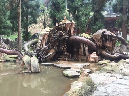 【叠翠瀑布】:谷中群峰叠翠,怪石枚举,那横空而出的瀑布像帘幕一样平常高高垂下,皎洁的水帘映着满山盈盈的翠枝绿树,有如仙界,真是“时有落花至,远随流水香 ;